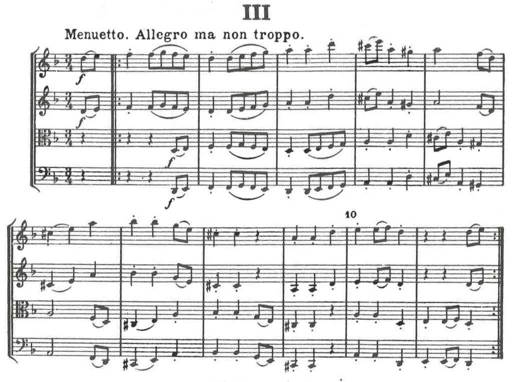 Making musical sense as a canon means bringing out the quality of imitation and the interplay involved in the chase. From the composition perspective, this implies that the material needs a degree of simplicity so that, when it is presented together with the imitating part, it can still be heard and followed. The material has a contour, gesture, or harmonic direction which makes the canonic juxtaposition interesting. In the Haydn example above, it strongly features melodic ups and downs; and the juxtaposition between the two groups produces a contrary melodic motion in opposite directions. Note that the time interval between the two groups is critical in the production of this motion. Imagine if the second group entered another measure later, so two measures apart, then the melodic motion wouldn’t be so successful, and it wouldn’t work harmonically either.