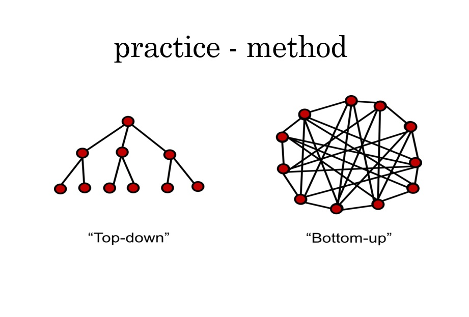 Most performance art, as well as most of society, organizations and businesses are led by top-down principles. In the top-down approach someone is very wise, makes a decision, and everyone is affected by it, and following support this idea. I am very interested in bottom-up principles. Understood as when new things has to be developed, everyone in the organisation contributes to this before the decisions are made. We collect ideas, and then we sort them, and based on the entire knowlegde and imagination of the organization, we solve the problems.