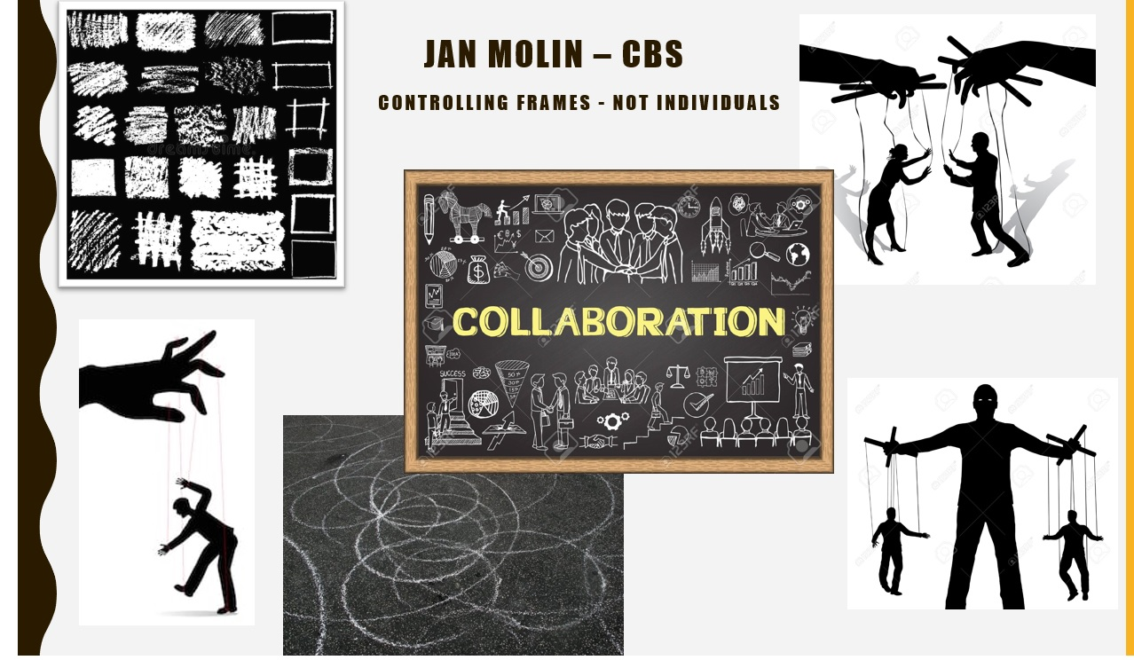 He writes: ‘A major showdown with the major management thought is the idea of refraining from substance control. An alternative management law can thus be decided as a framework and a process control. And such principles are the managerial challenge in risking letting go of supervision and direct influence on decisions and solutions. The management task is instead to create framework conditions and to facilitate initiative for the development processes that extend the range of action for co-workers. The rule of thumb here is that the more content is open, the more you have to manage frame and processes. The more leaders leave analyses of assessment and decisions to a group of co-workers, the more they must provide and maintain clear, well-structured and authorise framework conditions for work’.Molin, Jan (2003) – Organisation og ledelse – i et udviklingsperspektiv "Leading capacity" Copenhagen Business School, Copenhagen