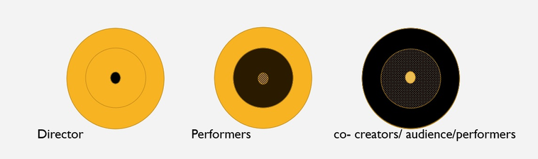 The difference between being the one who manages and controls content and the one who makes frames for others to create content. It really inspired me, to read this, and it changed my practice without This thinking has evolved into artistic response - a metod developed to make this thinking possible - A way to co-create scenic material.