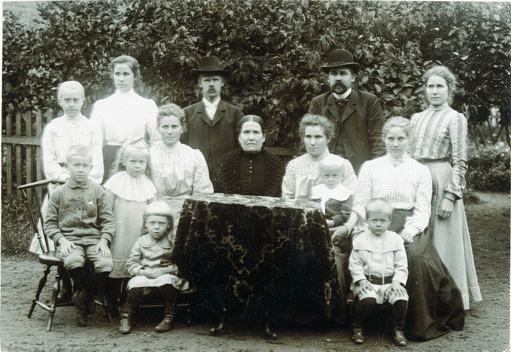 Työskennellessäni tämän omaelämäkerrallisen kuvaston kanssa toimin intuitiivisesti vailla ennakkosuunnitelmia tai työskentelylle tietoisesti asettamiani päämääriä. Ripustaessani taiteellisen työskentelyprosessin aikana syntyneet työt näyttelyksi Peilileikki II tein työskentelyyni liittyvän retrospektiivisen huomion: olin kokoamassa teosteni omaelämäkerrallisen kuvaston avulla naisellista sukupuutani (kuva 2). Keraamisten töiden lähtökohtina olivat työprosessin alussa valitsemani valokuvat, jotka esittivät sukuni naisia viidessä polvessa. Kuvissa esiintyi itseni lisäksi äitini, äidin äitini, äidin äidin äitini (kuva 3) sekä äidin äidin äidin äitini.