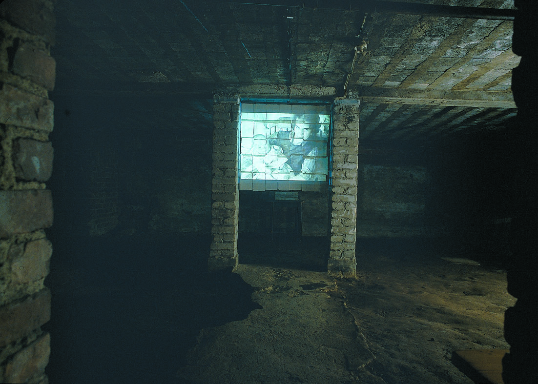Kuva 1 ja Video 1: Maarit Mäkelä, Naisellista genealogiaa heijastettuna posliiniscreenille, Galleria Laterna Magica, Helsinki 2000.