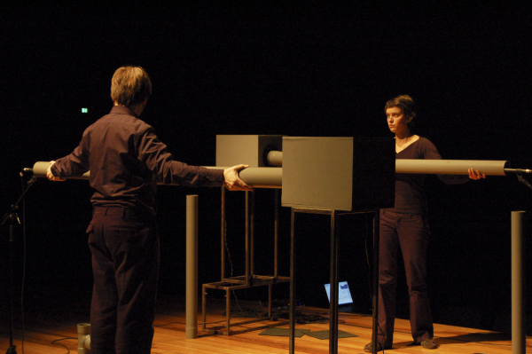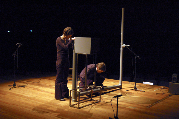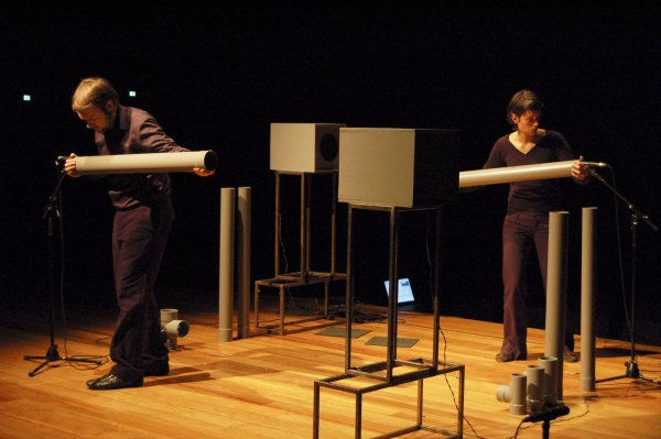 a feedback performance for two performers, pvc-pipes, joints and digital processing.