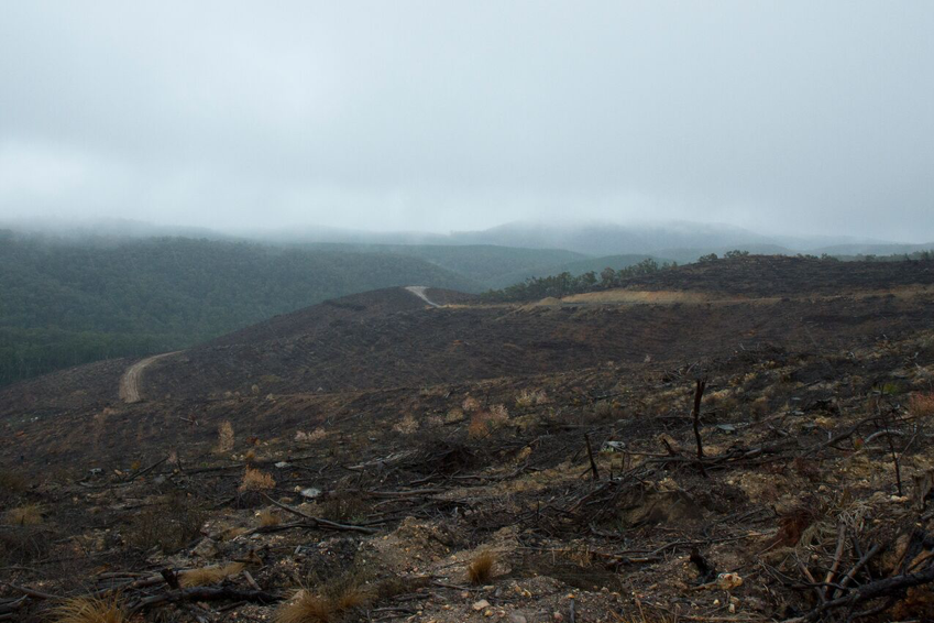 Drawing upon the xylophonic tree recording mentioned by Martin Michener and the acoustic testing being carried out in Australian radiata pine plantations, my recording experiments Millionth Acre (2015-2017) and Dark Corner (2016) are based ontaking recordings from pines in radiata pine plantations.Millionth Acredocuments the millionth acre of radiata pine planted in the Central Tablelands of New South Wales in 1972. The site features a small roadside plaque commemorating the expansion of the timber industry, yet when I first visited the site in 2012, the site had been clear-felled. Instead of thick pines, the land was blackened by burn piles and shriveled native plants poisoned by herbicide. Subsequent site visits aimed at field recording this zone of desolation, documenting a barren windswept plain where the forest previously stood. Ongoing documentation of the Millionth Acre site has been undertaken with two iterative installations, featuring field recordings taken through pine trees, alongside documentary drone footage taken in Hampton State Forest. Dark Corner focused on taking recordings through individual trees along fire trails and minor access roads in a documentation of the New South Wales logging town Dark Corner.