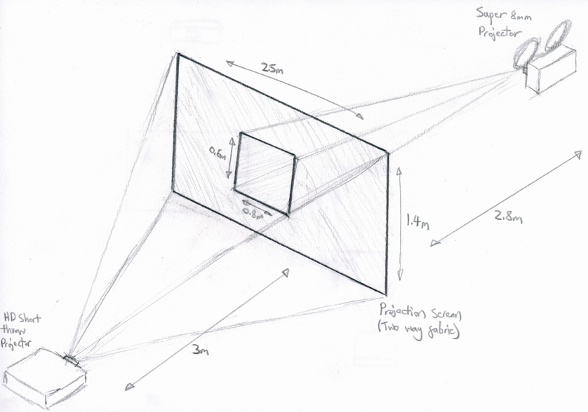 This project built on the practical investigation of moving image medium specificity conducted during my previous experiment Camera/Projector (2014). After exposing the distinctions between analogue and digital in this initial work, I felt that a more useful method of addressing my research questions would be to combine and intersect these moving image formats. Specifically, I felt that creating work which required audiences to engage with the two formats simultaneously, rather than in sequence, would help to understand better how each technology shapes and controls light.