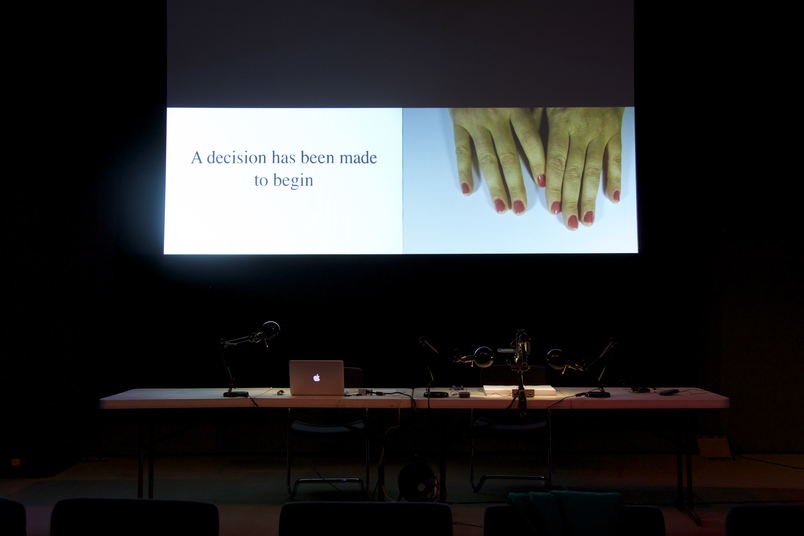 Context: This third iteration of the practice of conversation-as-material within the frame of Re— considered the relation of ‘waiting for something to happen’ and ‘making something happen’ within the process of writing-thinking, receptivity to the forces of accident, chance and distraction as ways for inviting in the unexpected. The performance lecture was commissioned as part of Accidentally on Purpose an exhibition, online project, series of soundtracks and closing event curated by Candice Jacobs and Fay Nicolson and produced in collaboration with QUAD, Derby, 2012.