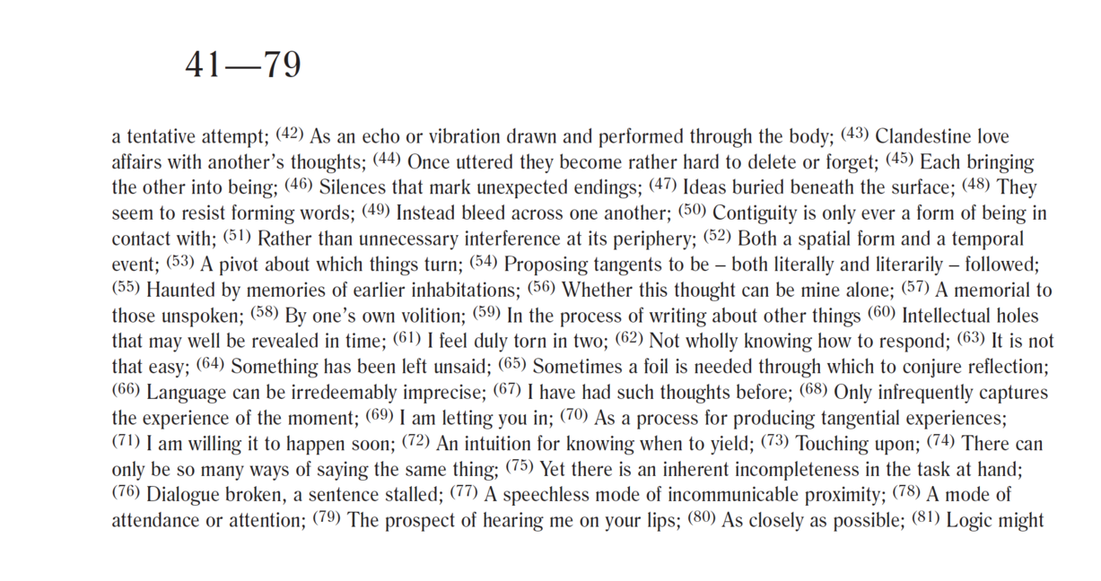 Published as part of: Emma Cocker, 'Conversation-as-Material', in the Special Issue 'Practices of Phenomenological and Artistic Research', (eds.) Alex Arteaga, Emma Cocker, Erika Goble, Juha Himanka, Phenomenology & Practice, [Vol. 17, No.1, 2022], pp.193-223. ISSN 1913-4711. See full issue here: https://journals.library.ualberta.ca/pandpr/index.php/pandpr/index
