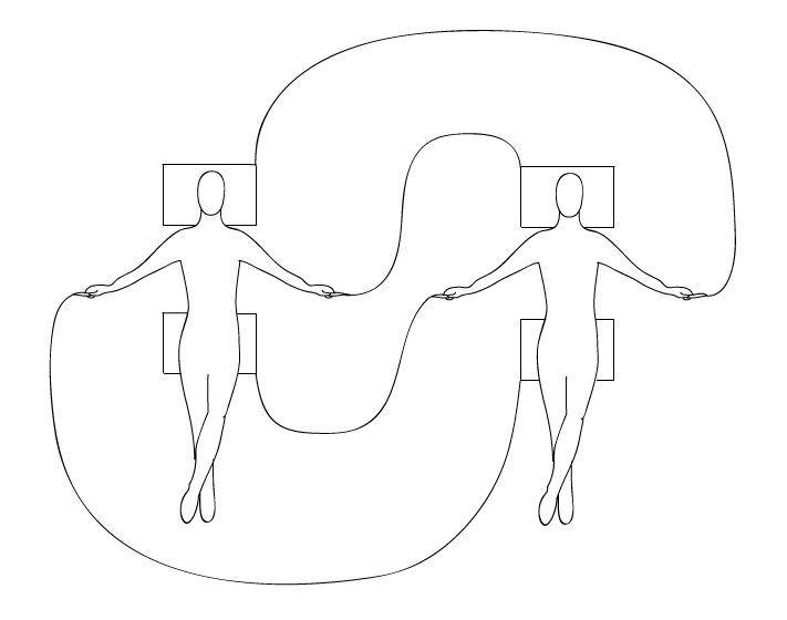 When looking at Eeman’s diagram of the Relaxation Circuit, the symbolism of the act of lying together in parallel, connected by wires in something akin to an electrical circuit, makes a provocative gesture of communion, a proposal about the power of collectivity, the potential of joined bodies. Not explicit in this diagrammatic proposition are the continued attacks from the scientific and medical community and the subsequent categorization of such work as pseudo-science and quackery that many of these associated practitioners endured. On further investigation, the contention around the legitimacy of these practices cannot be disregarded either. Legal cases brought against electrotherapists by medical associations were sometimes the incident that served to propel these practitioners into public attention. Albert Abrams was charged with fraud by the American Medical Association in 1924. Although his trial was never resolved, scientific journals published several reports, which cast his practices into doubt.[13] The Austrian psychoanalyst Wilhelm Reich, known for his theories on orgone energy, was jailed for contempt in 1956. My research does not aim to interrogate these questions of legitimacy or the scientific authenticity of their claims; instead, I’m interested in exploring what these case studies offer in terms of their cultural, philosophical, and social significance in relation to our understanding of energy. The Orgone Accumulator, the Oscilloclast, and the Relaxation Circuit make intriguing propositions about energy, the body, and technology. These technologies all explore the possible implementation of the body’s own electric charge. However, Eeman’s Relaxation Circuit is unique in considering the body to be self-sufficient, countering the culture of mainstream medicine at that time. By providing schematics for his devices in his literature, Eeman demonstrated how his techniques could be implemented with simple materials, unlike practitioners such as Abrams and Reich, who offered their machines at a price and kept their designs secret. Here, the underlying politics and culture of energy are played out differently, with Eeman appearing to suggest that energy can be harnessed freely and used for individual or collective gain without government or corporate regulation. Further, his circuits appear prescient of later technological concepts, including cybernetics, network theory, and biofeedback.[14] It was my intention to participate in and reflect on this particular historical discourse by appropriating Eeman’s Relaxation Circuit.