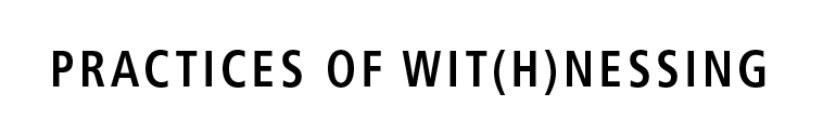 [1] We are grateful to critical wit(h)ness Dieter Mersch whose reflections on the complex histories of witnessing (Summer Lab, 2016) prompted our differentiation of the role of wit(h)ness from witness. In Epistemologies of Aesthetics, p. 47, Mersch specifically references the ‘discourse on witnessing’ — e.g. Jean-Luc Nancy, ‘Un souffle / Ein Hauch’, in Nicolas Berg, Jess Jochimsen and Bernd Stiegler (eds.), Shoah. Formen der Erinnerung. Geschichte, Philosophie, Literatur, Kunst (Munich: Wilhem Fink, 1996), pp. 122-129; Giorgio Agamben, Remnants of Auschwitz: The Witness and the Archive (New York: Zone Books, 1999)