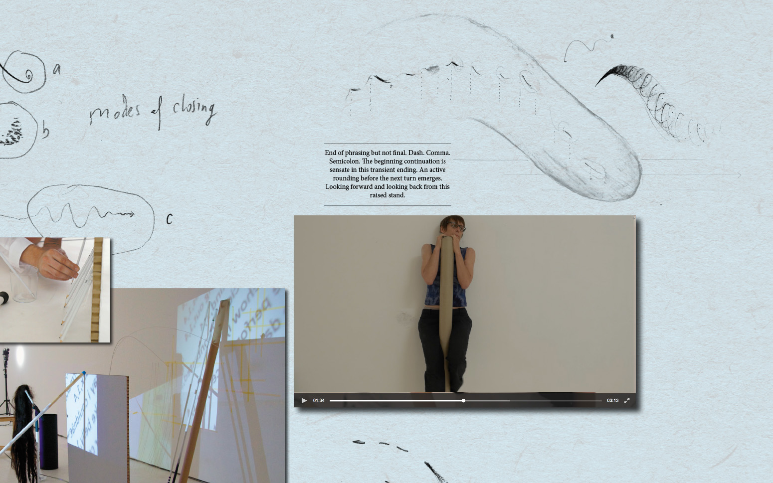 We have developed this exposition for ‘scoring an aesthetic encounter’ with the multimodal (visual, textual, sonic, performative) findings from Choreo-graphic Figures: Deviations from the Line, an artistic research project by Emma Cocker, Nikolaus Gansterer and Mariella Greil. Choreo-graphic Figures stages a beyond-disciplinary encounter between the lines of choreography, drawing and writing, for exploring those forms of knowing-thinking-feeling produced in the slippage and deviation when different modes of practice enter into dialogue, overlap and collide. Within this exposition, our aim is not to present an exhaustive account of the Choreo-graphic Figures project. Rather, we seek to test the specificity of this online context for extending our investigation through the following questions: how can we create a digital archive capable of reflecting the durational and relational aspects of the research process, a mode of online dissemination that enacts something of the liveness or vitality — the energies and intensities — within collaborative live exploration? Beyond the limitations of the static two-dimensional page, how can an enhanced digital format enable a non-linear, rhizomatic encounter with artistic research, where findings are activated and navigated, interacted or even played with as a choreo-graphic event? We have modelled the exposition on the experimental score system developed within our research project, for organising our process of aesthetic enquiry through the bringing-into-relation of different practices and figures. The score is approached as a ‘research tool’ for testing how different practices (of Attention, Notation, Conversation, Wit(h)nessing) can be activated for sharpening, focusing or redirecting attention towards the event of figuring (those small yet transformative energies, emergences, and experiential shifts within artistic process that are often hard to discern but which ultimately steer the evolving action) and the emergence of figures (the point at which the experience of ‘something happening’ [i.e. figuring] coalesces into recognisable form). Within this exposition, our research can be encountered experientially through → Playing the Score, whilst the → Find Out More section contains contextual framing alongside conceptual-theoretical reflections on the function of our score and its ecology of practices and figures.