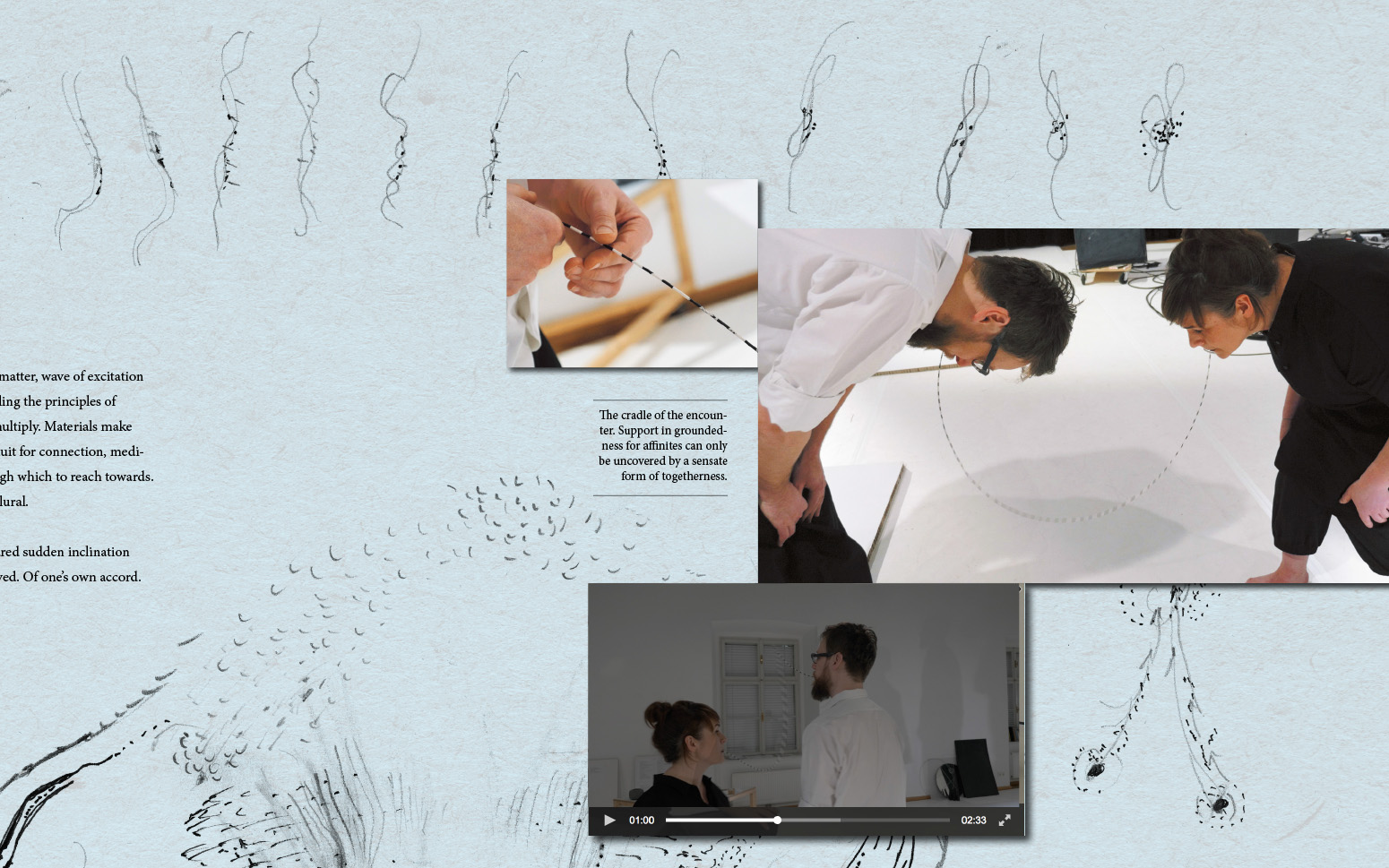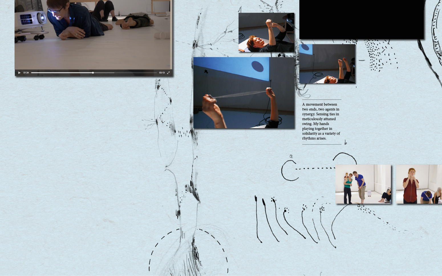 We have developed this exposition for ‘scoring an aesthetic encounter’ with the multimodal (visual, textual, sonic, performative) findings from Choreo-graphic Figures: Deviations from the Line, an artistic research project by Emma Cocker, Nikolaus Gansterer and Mariella Greil. Choreo-graphic Figures stages a beyond-disciplinary encounter between the lines of choreography, drawing and writing, for exploring those forms of knowing-thinking-feeling produced in the slippage and deviation when different modes of practice enter into dialogue, overlap and collide. Within this exposition, our aim is not to present an exhaustive account of the Choreo-graphic Figures project. Rather, we seek to test the specificity of this online context for extending our investigation through the following questions: how can we create a digital archive capable of reflecting the durational and relational aspects of the research process, a mode of online dissemination that enacts something of the liveness or vitality — the energies and intensities — within collaborative live exploration? Beyond the limitations of the static two-dimensional page, how can an enhanced digital format enable a non-linear, rhizomatic encounter with artistic research, where findings are activated and navigated, interacted or even played with as a choreo-graphic event? We have modelled the exposition on the experimental score system developed within our research project, for organising our process of aesthetic enquiry through the bringing-into-relation of different practices and figures. The score is approached as a ‘research tool’ for testing how different practices (of Attention, Notation, Conversation, Wit(h)nessing) can be activated for sharpening, focusing or redirecting attention towards the event of figuring (those small yet transformative energies, emergences, and experiential shifts within artistic process that are often hard to discern but which ultimately steer the evolving action) and the emergence of figures (the point at which the experience of ‘something happening’ [i.e. figuring] coalesces into recognisable form). Within this exposition, our research can be encountered experientially through → Playing the Score, whilst the → Find Out More section contains contextual framing alongside conceptual-theoretical reflections on the function of our score and its ecology of practices and figures.