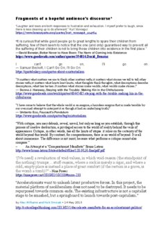 The piece was so awfully done, demagogical, veganist left wing bullshit wanting to make me feel sad and guilty for all the plstic left in the ocean, preaching to the converted and so on and so on. In order to not allow my emotional judgement to pervade the writing I decided to use only quotes, picking up on Barthes' "Fragments of a Lover's discourse". It was y way of thinking and proposing altenatives both to the piece and to the "there is no alternative//the apocalypse is coming" discourse which fuels both right wing conservatives closing countries off as well as infuriated, snobbish left wing artists thinking they can change anything by commenting on it from a superior point of view. CRITIQUE IS DEAD, the future if there is any which can be lighter seems to me to lie in making dances, telling jokes and seriously investigating on possible alternatives and disseminating those through art or activism or simply through existing in a world where you can share yout thoughts and what you read or consider throughout your life.