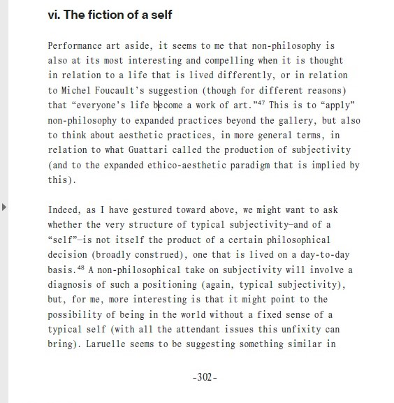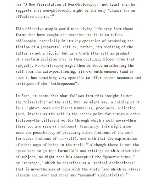 Quotes I picked up from Simon O'Sullivan text on "Non-Philosophy and Art Practice" in pictures to the left and box of Notes to Self