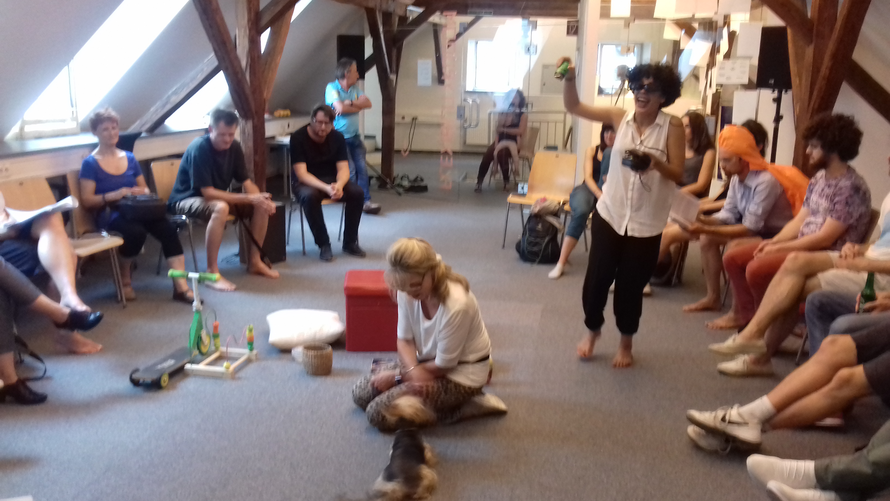 Warm Up: 10 Mins Shaking + 20 mins Regressing as creatures into the Big Bang and back + Make a drawing + Exchange Drawings + Write a Poem.