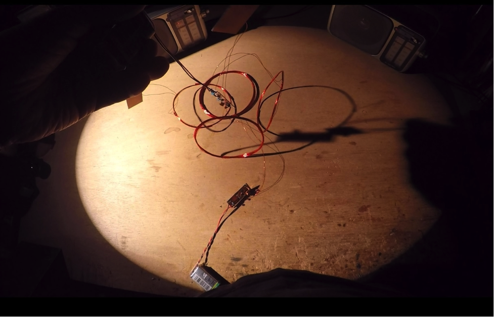 During Radio Home Run’s tenure, members of this collective, including Kogawa, came to view the practice of walking to the studio — moving through, around, and within the electromagnetic field produced by the station's very low-powered FM transmitter — as integral to their radio-making experiences. Because of this, Kogawa began experimenting with weaker and weaker transmitters that produced smaller and smaller coverage areas in his artistic work, which contributed to the development of his concept and practices of radioart. His recent contribution to the Radio Revolten Festival marks the current state of his thinking on this concept and its practices and culminates from years of artistic research conducted during experimental radioart performances. The piece, entitled CONCILIATION OF SFERICS, prominently features physical movement, radio transmitters and receivers, and nonrepresentational layers of radio static and noise. In it, Kogawa's hands move a quartet of very low-powered broadband radio transmitters through, around, and within the very small electromagnetic fields that they produce.