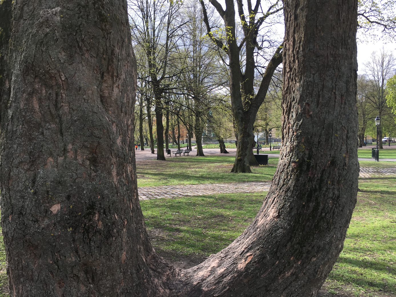 The most obvious connection that crossed my mind was the statue of Carl von Linné or Linnaeus in the middle of Humlegården Park. It is almost distinguishable between the trees in the larger of the images where I sit in or on the sycamore, literally behind the back of Linnaeus. The taxonomy of Linnaeus has been completely decisive for our way of regarding plants, and he is even considered one of the founders of modern ecology.7 Ecology and history, however, are also present in the trees themselves. Most park trees are much older than the humans who mingle among them and enjoy the oxygen rich and cool air they produce.