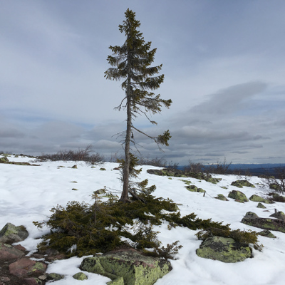 Recently I had the possibility to visit an even older tree, Old Tjikko, a spruce that grows on the Fulufjället in Dalarna in Sweden. It is a clone, that is, the roots are old, not the relatively thin trunk that rises from the juniper-like shrub of branches growing along the ground. With carbon dating, however, the age of the little spruce tree has been estimated to 9950 year. Yes, nine thousand nine hundred fifty years! Thus, the spruce has settled there on the fell right after the ice age and still lives there. It is (one of) the oldest trees in the world.2 Another candidate for that title is a Bristlecone pine called Methuselah, which is estimated to be 4800 years old and lives high up in the mountains of California, where neither pest nor fungal diseases can reach it.3