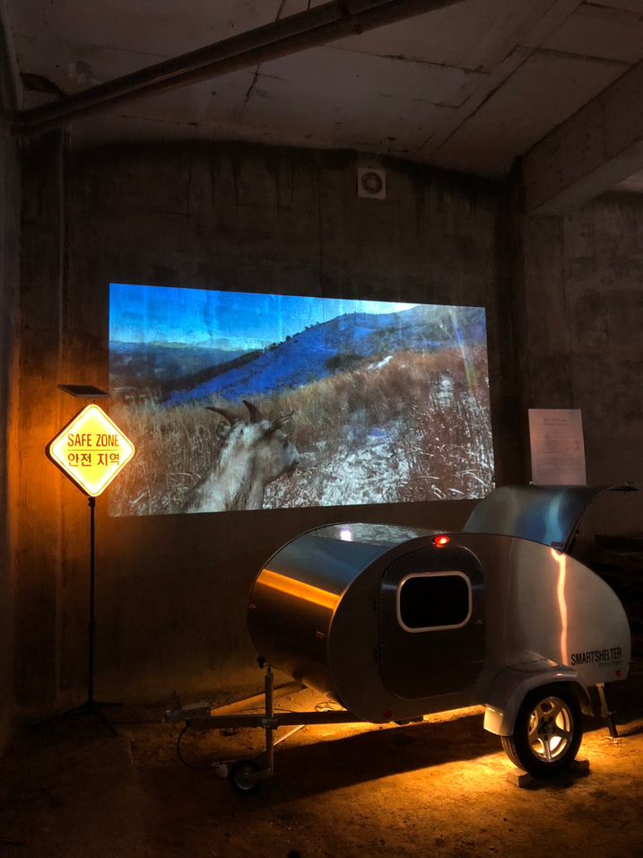 The idea of this research initiative around “shelters” emerged from the artists’ participation in interdisciplinary research-based colloquiums that were held during the past three years, in conjunction with the Research Center of the Arts at Hongik University and the Interlab, a multidisciplinary research group consisting of visual artists/curators, architects, engineers and philosophers. Following a thread of questioning that emerged out of these discursive events, the artists inquire into South Korea’s “compressed and rapid modernization” after the Korean War that led to the dominance of high-rise apartment cultures and function-oriented urban planning. Because of the primary focus on the efficient and rapid accumulation of capital in the urban space, the history of urban development has often run counter to the “safety and protection” of residents in the urban environment, building structures that rather distress subjectivity than provide “shelters” that are human-centered.