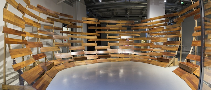 Sculpture with purpose built entrance through window and an inner space shown at Exhibition Laboratory, Helsinki, 2016.