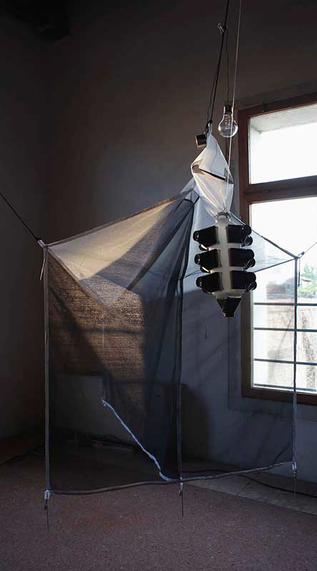 The work transforms René Malaise’s inventive design into a collective viewing device. In our exhibition no living insects will be trapped. Instead, the collecting jar of an entomological malaise trap is replaced by slide viewrs. Each slide viewer shows a photograph of an insect bite.