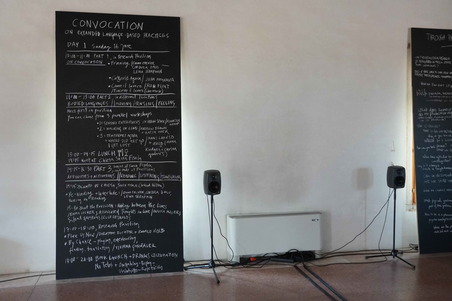 Convocation – a call to come together, a gathering of expanded language-based practices. Weaving between artistic research and phenomenological approaches,