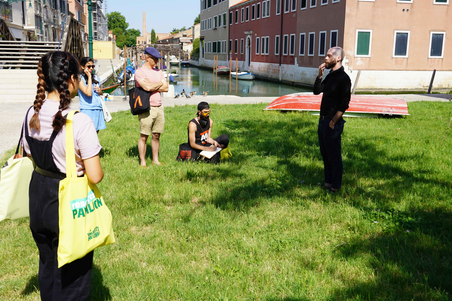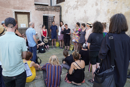 A gathering with the aim to to discuss and analyse the city of Venice and its fragile ecological history, the system of the international art world and mega-shows like the Venice Biennale and to search for new and sustainable ways to work as an artist today in this context.