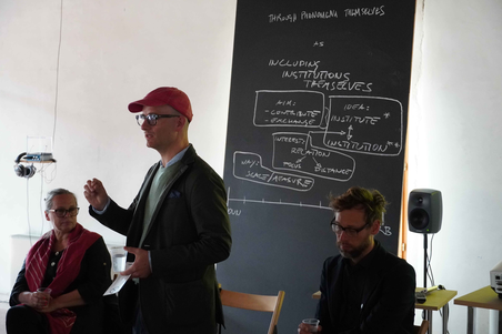 A public morning session as a contribution of the exchange in the research cell “Through Phenomena Themselves”, proposing and inquiry into research practices developed in two fields — artistic research and phenomenology. Panel conversation involving Alex Arteaga, Gerald Bast, Alexander Damianisch, Cordula Daus, Nikolaus Gansterer, Margarete Jahrmann, Ralo Mayer, Barbara Putz-Plecko, Charlotta Ruth, Katarina Šoškić.