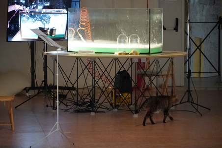 The audience is invited to listen to sounds produced by insects and to imitate and interpret them using contact microphones and DIY instruments of kitchenware. A playful happening facilitated by Tuula Närhinen, Tytti Arola, Esa Kirkkopelto and Otso Lähdeoja.