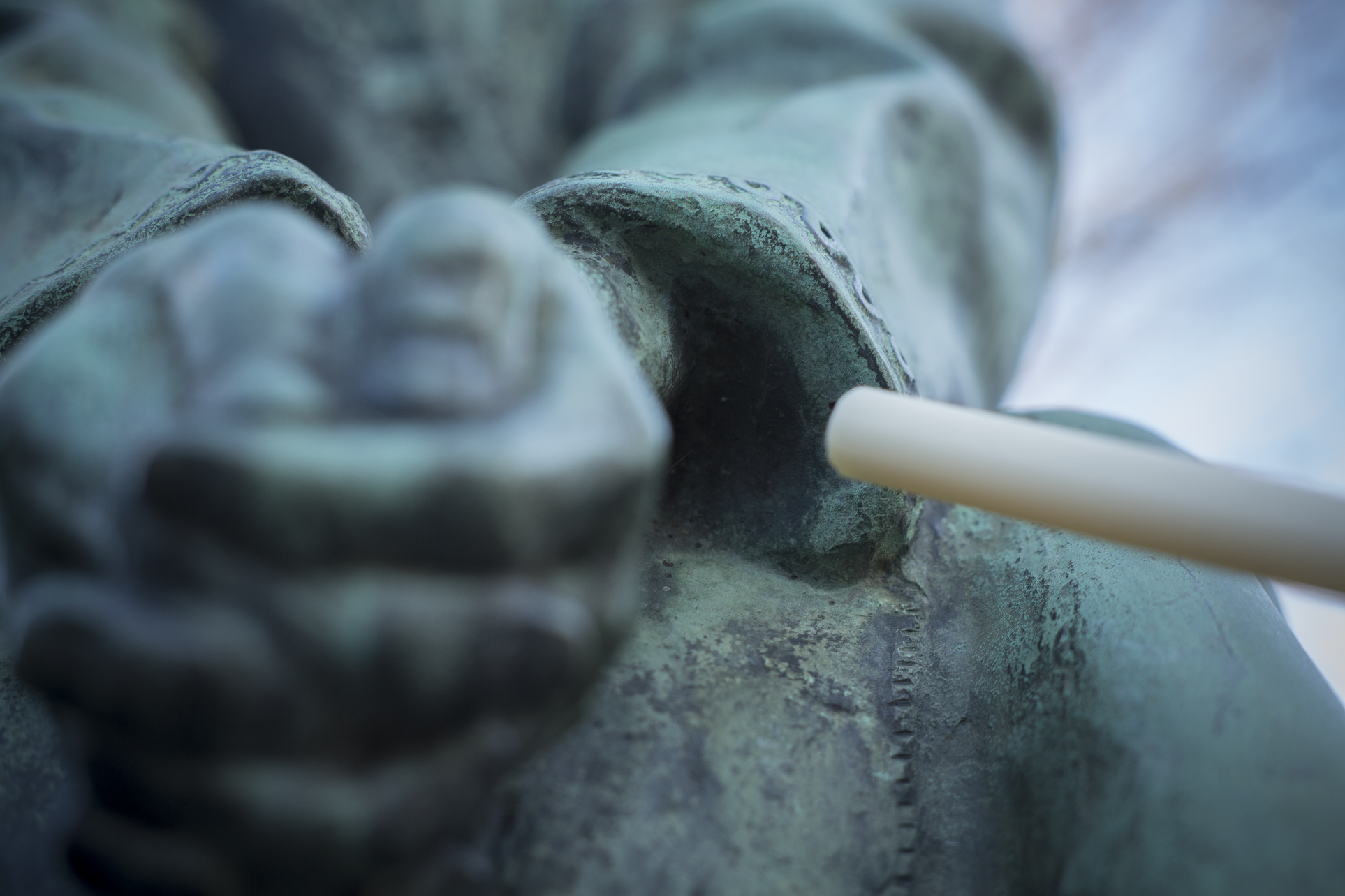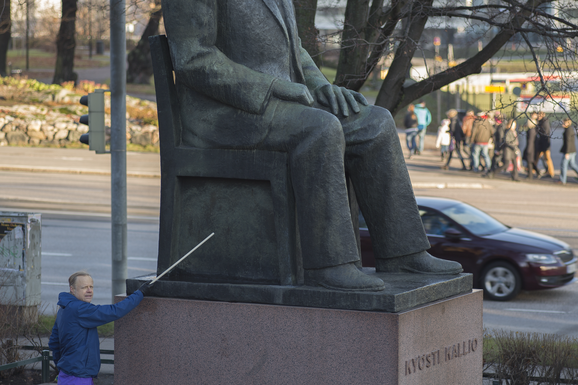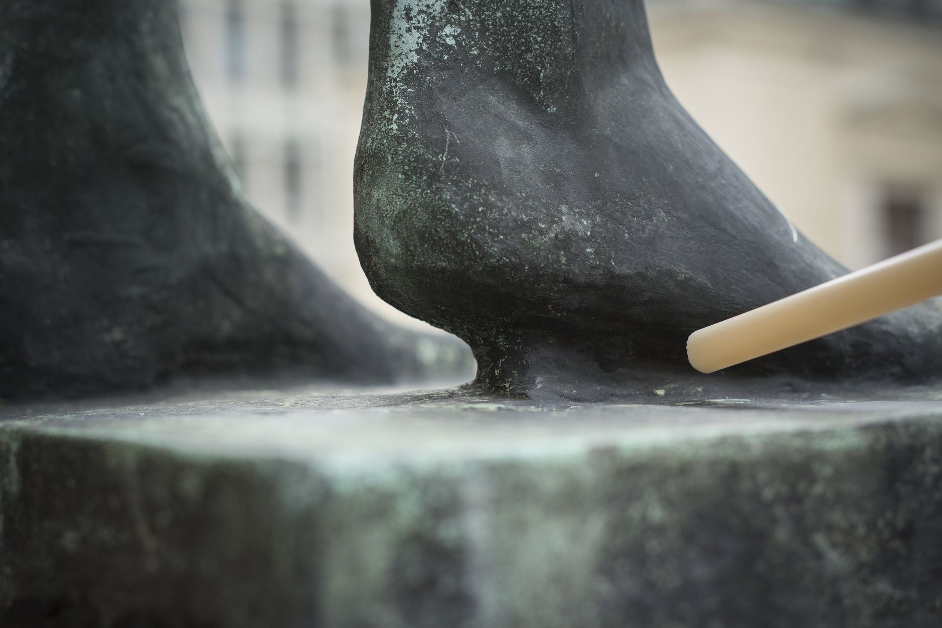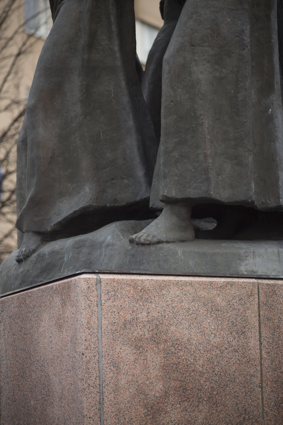 Toinen variaatio koostuu 14-osaisesta kuvasarjasta, jossa virtuaalista materiaa etsitään Helsingin julkisista monumenteista. Mikään taideluomus ei pysty koskaan sitomaan merkityksenmuodostuksensa piiriin kaikkea edellyttämäänsä materiaalia, esillepanonsa rajoja tai reunoja. Nämä rajat voidaan osoittaa konventionaalisin tilallis-teknisin järjestelyin – kuten kehys, jalusta, galleria, teatterisali - jolloin huomio voidaan rajata helpommin taideobjektiin itseensä. Silti, kuten edellä on ositettu, samantyyppinen rajankäynti sisältyy jo taideobjektin itsensä olemistapaan siinä määrin kuin se värjyy aktuaalisuuden ja virtuaalisuuden rajapinnalla. Taideobjektit voivat ottaa tämän huojunnan myös aiheekseen. Monissa tapauksissa, erityisesti figuratiivisesti esittävän taiteen piirissä, kyseinen huojunta, eli alueet joilla teoksen virtuaalinen materiaalisuus voisi päästä esiin, pyritään joko kätkemään tai naamioimaan. Tai sitten nojataan luottavaisesti esittämisen konventioihin ja oletetaan että teoksen katsoja jättää kiinnittämättä huomiotaan ”epäolennaisuuksiin”. Kuvasarja paljastaa kuinka eri kuvanveistäjät ovat eri aikoina pyrkineet ratkaisemaan eri tavoin tämän ongelman, joka kuuluu lähtemättömästi kaikkiin taiteellisiin valmistusprosesseihin. Samalla se pyrkii osoittamaan, aivan kuten alussa nähty sarja Helsingin Kalliosta, kuinka virtuaalinen materia konstituoi implisiittisesti kaikkea havaintoamme. Siirtymä leikkiin on joka hetki mahdollista sekä toiminnan että havainnon tasolla. Mutta kaikella leikillä on paitsi toiminnallinen ja havainnollinen, myös materiaalinen ulottuvuutensa. Askartelu on ihmiselle tunnetusti syvän onnellisuuden lähde. Se mitä edellä on sanottu auttaa toivottavasti ymmärtämään miksi näin on.