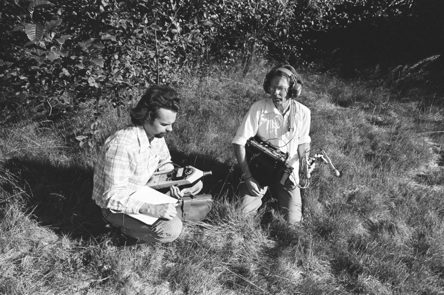 The WSP group at SFU, 1973; left to right: R. M. Schafer, Bruce Davis, Peter Huse, Barry Truax, Howard Broomfield