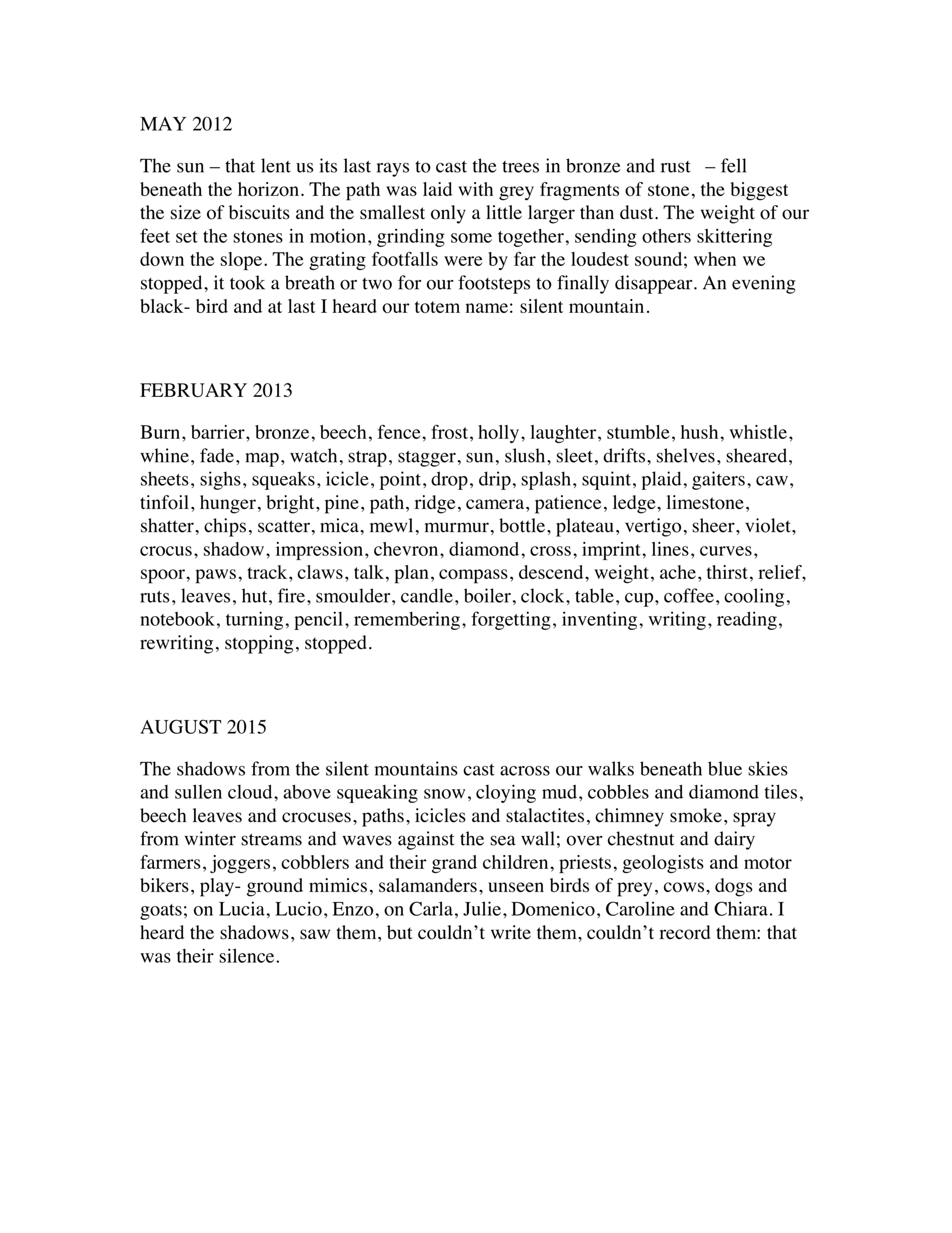 Voegelin co-convenes Points of Listening, a monthly event for social listening and sound making, with Mark Peter Wright, www.pointsoflistening.wordpress.com, and uses her score/phonography blog www.soundwords.tumblr.com, as a template for a participatory public listening, writing and sounding. As an artist Voegelin works collaboratively with David Mollin, in a practice that engages words, things and sound and focuses on invisible connections, transient behaviour and unseen rituals.