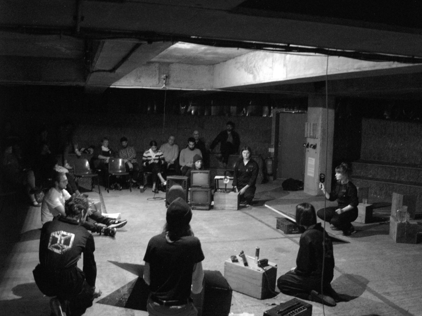 In this talk Charlie Pritchard, Georgie Ryan and Maddison Collymore from the Noematic Collective discuss with Jason Dungan on the relations between musicology and video. Jason has previously run sound and video workshops at The arts University Bournemouth where he works as a visiting lecturer and taught the collective members. Through his involvement in the band ‘Squares and Triangles’ we talk about the challenges of improvisation and their unique position in practicing and performing. We also talk about how this ethos feeds into video work and the emergence of the term ‘accidental cinema’. The video work is also used as an organisational strategy in the band and is interpreted into sound.