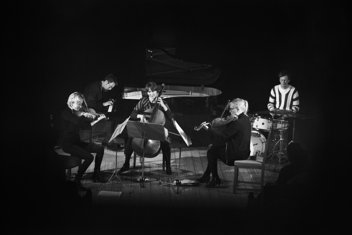 My ensemble Resonance (previously known as ” Strings, Percussion & Piano”) consists of 3 string players as well as Peter Bruun on drums and myself on piano. The string players all have a background in European classical music and "new music" (composed, European new music), whereas Peter and I originally came out of improvised music, jazz and its neighbouring regions. In this ensemble, we have dealt with the above-mentioned thoughts on artistic encounters for several years. I have realized that my primary curiosity orbits around the questions: