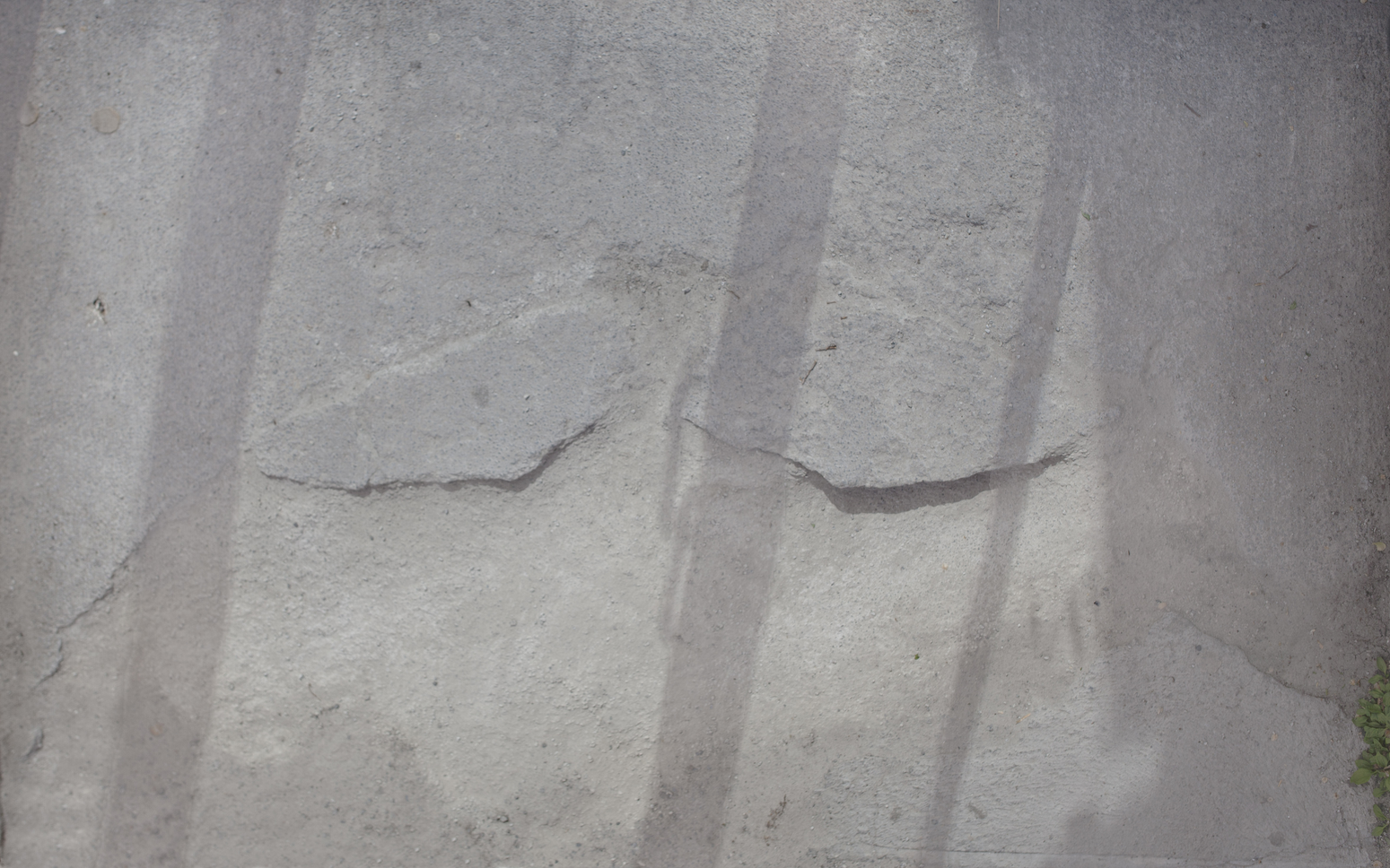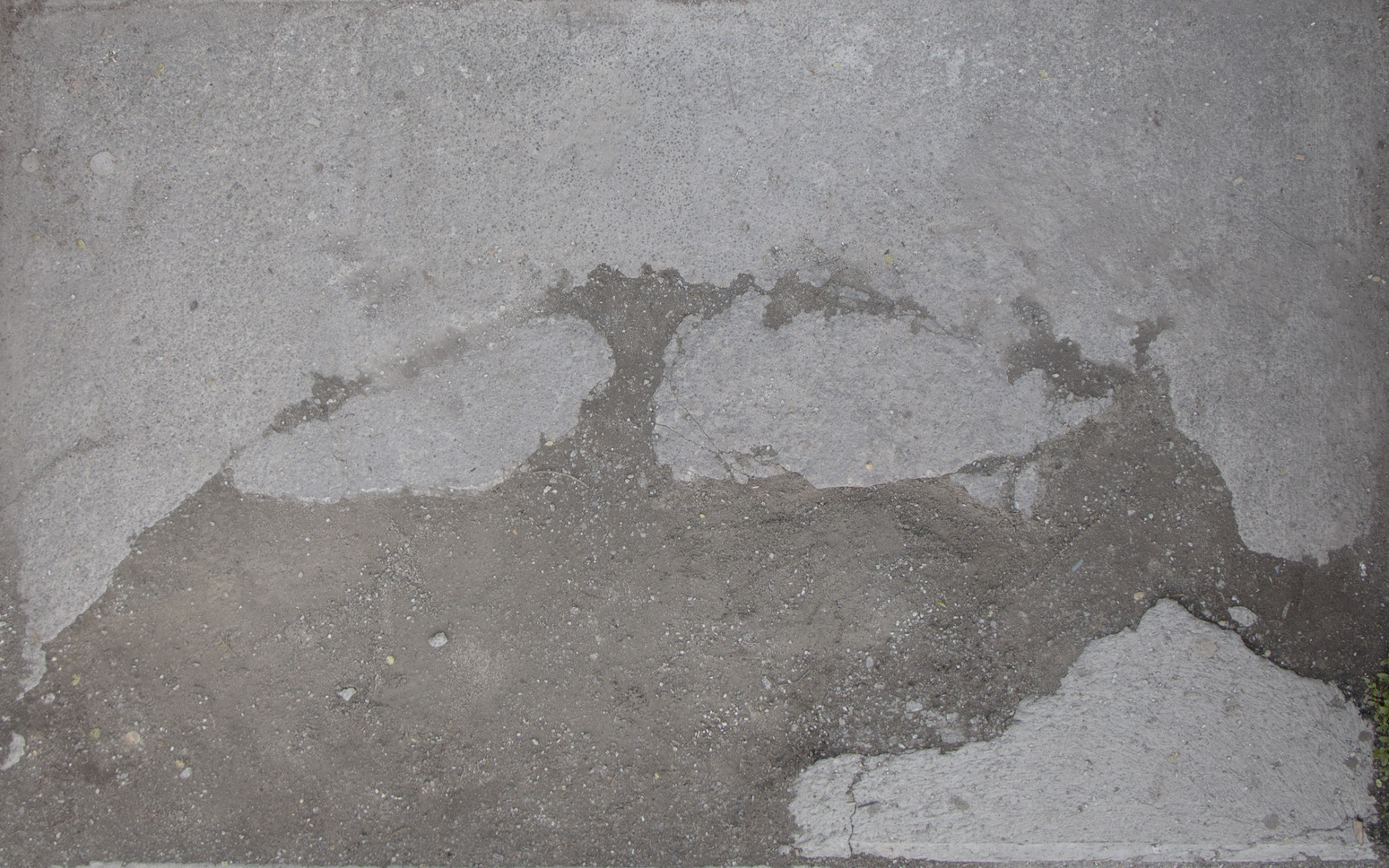 Nos actions se synchronisent et s’accordent ainsi au rythme d’un travail rigoureux. Nous nous retrouvons, encore maintenant, physiquement impliqués dans le processus de création. La question de l’épuisement et celle des limites de nos corps en mouvement se posent cette fois à travers l’expérience du territoire restreint que représente la dalle d’entrée du 407. C’est à travers un contact tangible et une dépense d’énergie considérable qu’un rapport de proximité avec ce qui nous entoure se développe. Remplacer l’articulation de la jambe par celle du bras et faire point de contact avec la main plutôt que le pied le temps d’un ambitieux travail de sablage aura occasionné un rapprochement entre nos corps, la dalle et le matériau constituant ce type d’infrastructures sur lesquelles nous marchons tous les jours. Cela dit, puisque Phase 8 : les inscriptions résiduelles s’imbrique concrètement dans une démarche artistique fortement empreinte par la marche, l’objet de l’étude — la dalle — est en soit révélateur.