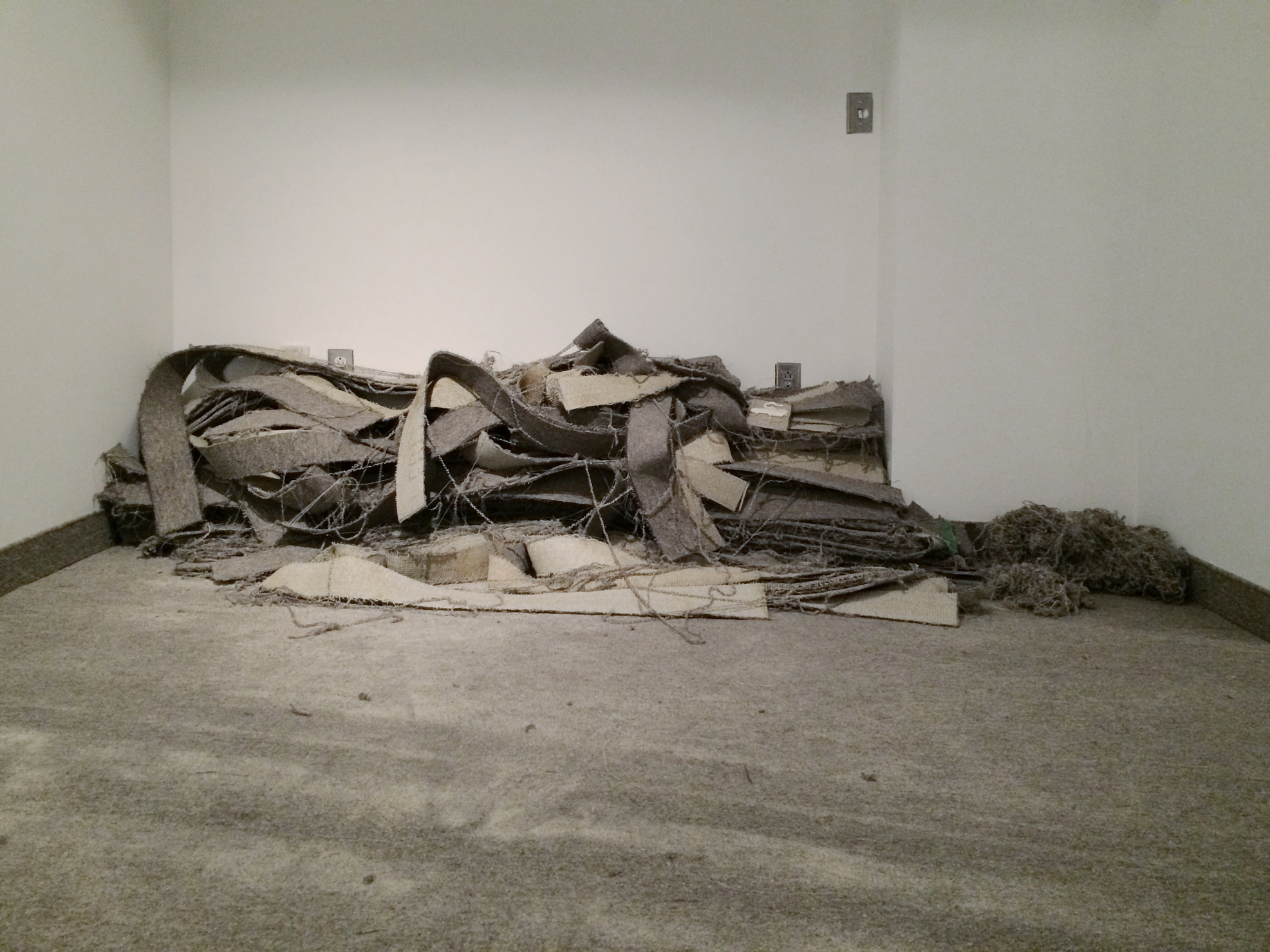 Arracher, meuler, peinturer, découper, éventrer, empiler, édifier puis faire tableau ; cet ouvrage nous aura rendus particulièrement sensibles au matériau envahissant constituant le tapis du 407 boulevard de Maisonneuve E.