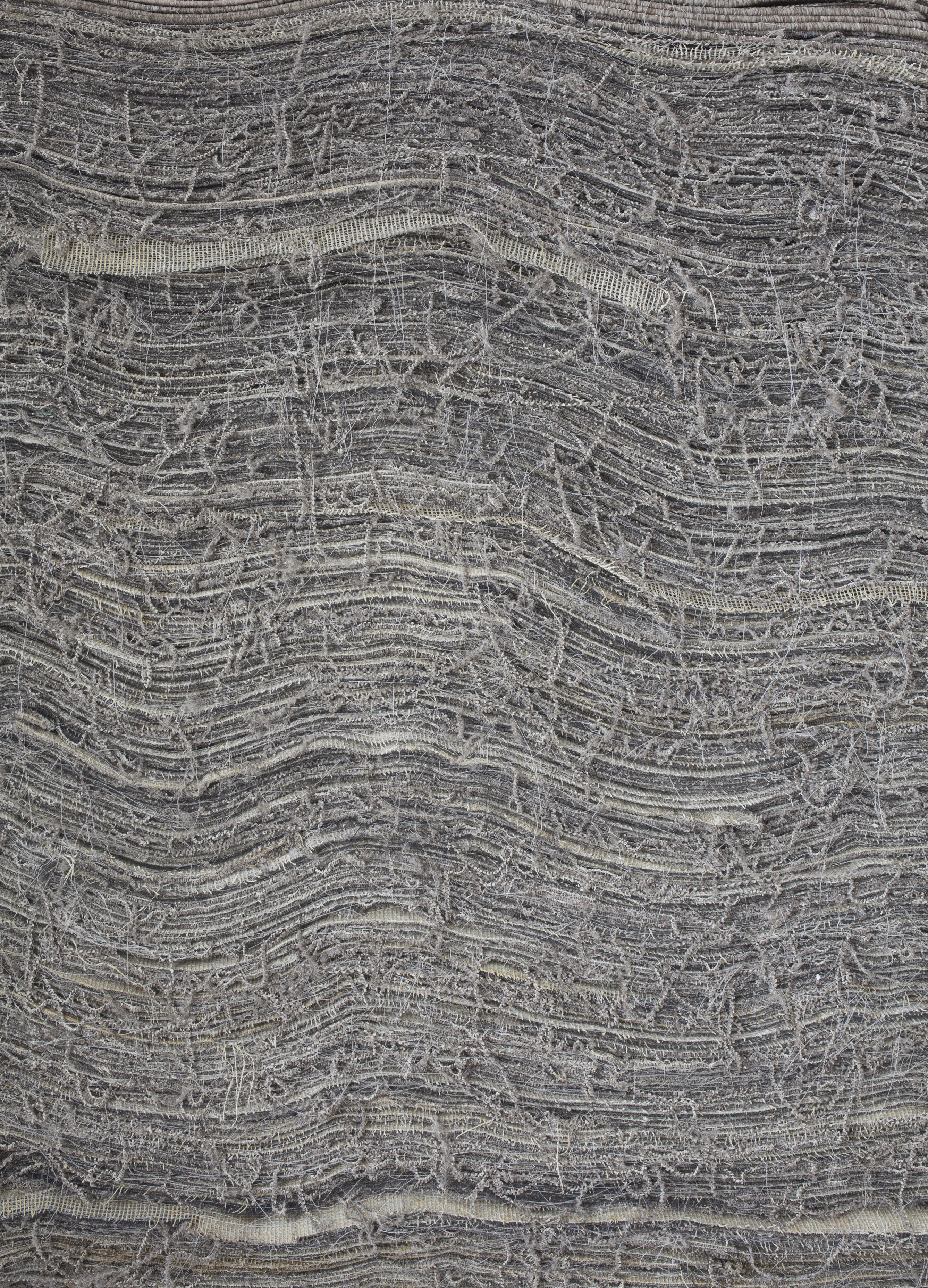 Cela étant décrit, l’œuvre n’est pas non plus réductible au message ou au processus qui peut être ici décodé. L’ouvrage « Signe et forme : Philosophie de l’art et art paléolitique » de Philippe Grosos soutient qu’il y a dans l’art quelque chose qui reste, au delà des codes, émotionnellement accessible. Prenons pour exemple la série des trois papiers sablés qui évoque simultanément paroi et paysage. L’aspect à la fois massif et relâché des panneaux de tissus que l’on sent malléables, la ligne d’horizon toute en délicatesse que dessine la couture qui se prolonge, la simplicité des tracés, la neutralité des tons, la douceur des estompés, la subtilité des formes créées par la disparition de certains grains... tous ces détails constituant cette série détiennent le potentiel de rendre le spectateur sensiblement présent à ce qu’il découvre et ce, avant même de savoir ce qui y est représenté et signifié.