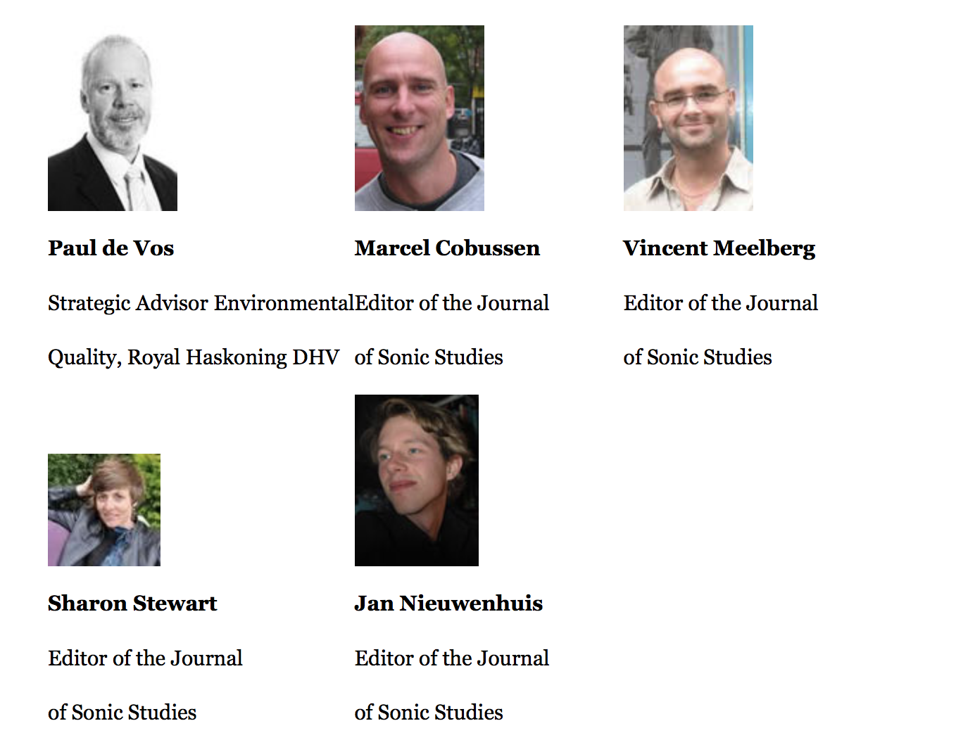 In 2003 Jonathan Sterne, Professor in the Department of Art History and Communication Studies at McGill University, Montreal, published The Audible Past. In this book Sterne claims that there is a tremendous amount of research being done on sound. However, this research is primarily taking place in the margins, for the most part not clustered or institutionally structured. What might be needed, Sterne suggests, is a platform where people can exchange ideas about sound, meet one another (virtually), discuss sound, and develop new ideas and theories. In 2011 the Journal of Sonic Studies was set up to provide scholars and artists with such a virtual platform. On December 7, 2012 the SONIC editors gave shape to Sterne’s suggestions by organizing this transdisciplinary expert meeting.