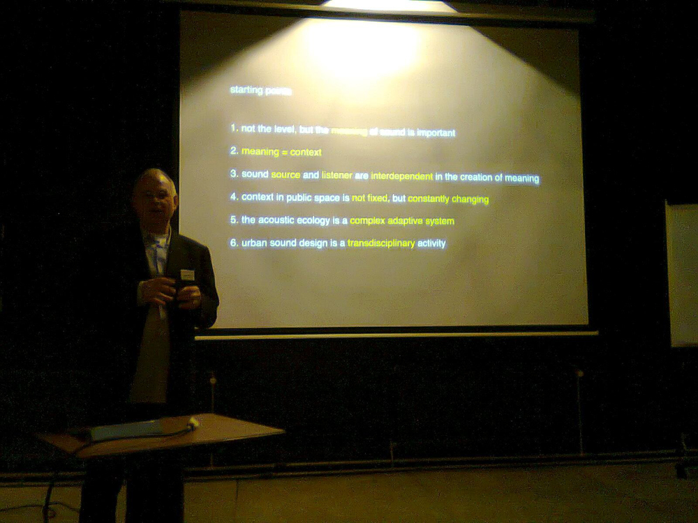 This was corroborated by Kees Went, who explained that urban sound design is becoming more and more relevant for city planners. Went also discussed his work on computational models of acoustic ecologies, models through which sounds in public spaces can be simulated. This is useful not only for city planners, but for game designers as well. For this allows them to design incredibly lifelike sonic environments for their games.