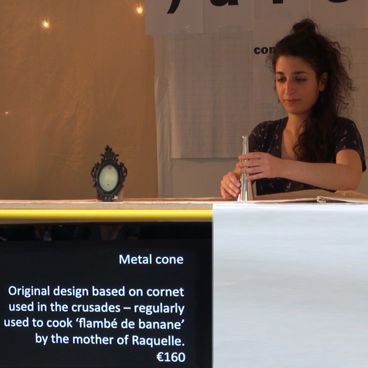 ARS concepts is a parody on authenticity as commodity, particularly within ‘hipster’ culture, which rejects objects of mass production in favour of a return to the hand made. ARS concepts (a cynical acronym for its three fictional entrepreneurial developers Ashilen, Raquelle, Stephane), turn an emptied café shop window into a specialist repurposed collectables store. In recognition of iconic rue de Flandres in central Brussels, which boasts an array of new or repurposed artisanal-styled products from hand-knitted woollen clothing to rare second-hand vinyl, ARS Concepts takes repurposing to an absurd extreme. All items are literally bought from local residents of the street during a community flea-market (coincidentally a few days before the performance) then repackaged as ARS-Authentic and revalued for sale online and offline.