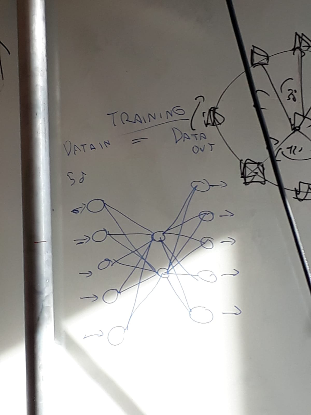 During this meeting the topic of dimensinoality reduction came up and a few methods to reduce the dimensions of a dataset were discussed. Jonathan then brought up the autoencoder, a type of artificial neural network used to learn efficient data codings in an unsupervised manner. Typically, an autoencoder has an input layer, an ouput layer and one or more hidden layers connecting them, but with the ouput layer having the same number of nodes of the input layer, and with the purpose of reconstructing its own inputs. The autoencoder therefore consists of two parts, the encoder and the decoder. The intermediate, compressed image is referred to as code or latent representation (Wikipedia).