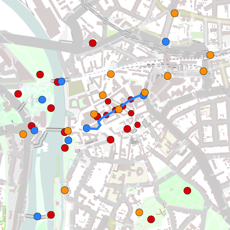 Mülheim an der Ruhr, points of significant activities. Map adapted from www.openstreetmap.org.