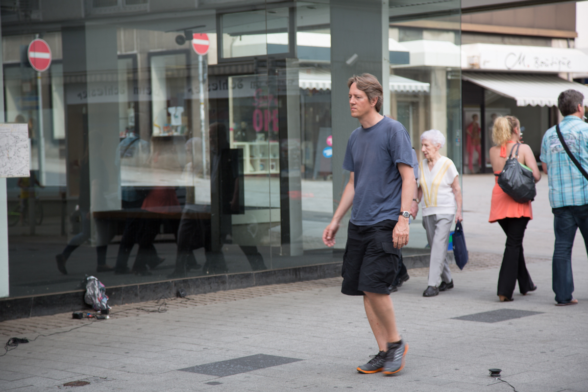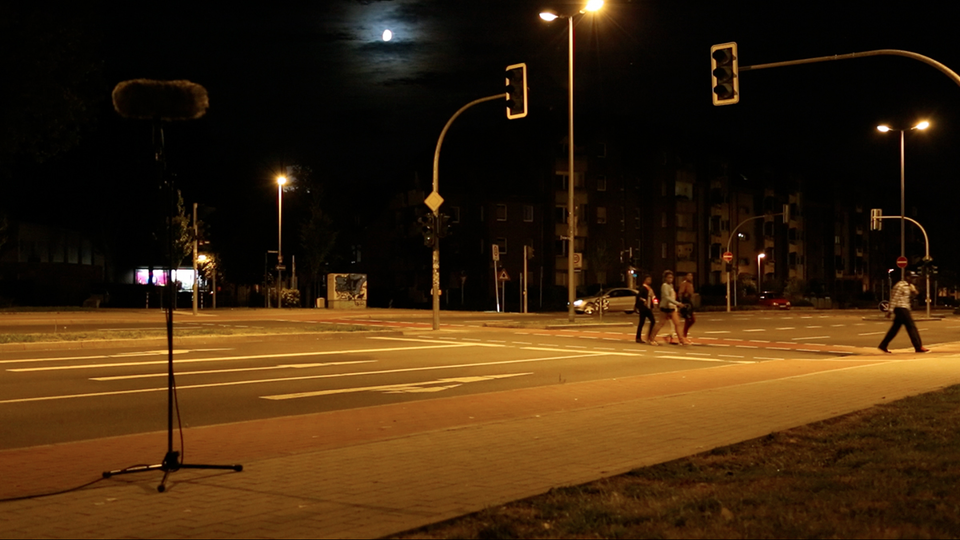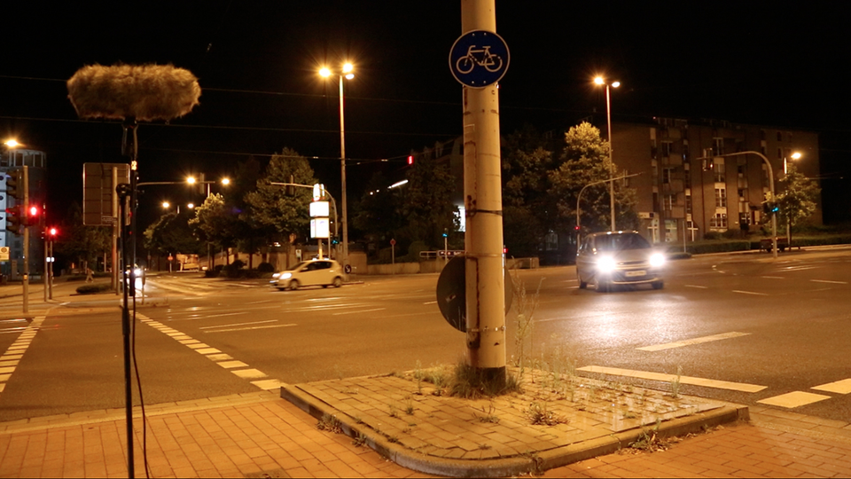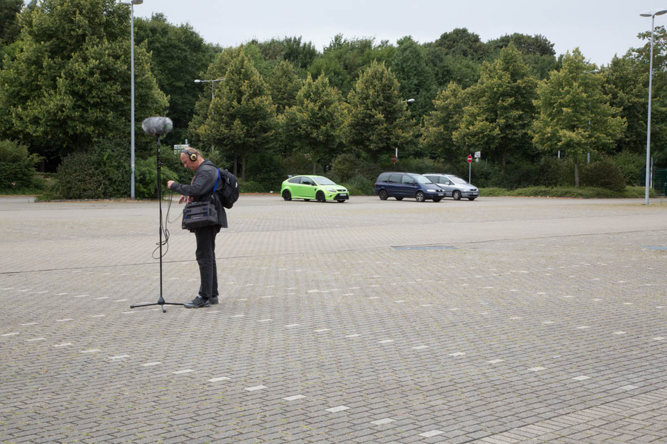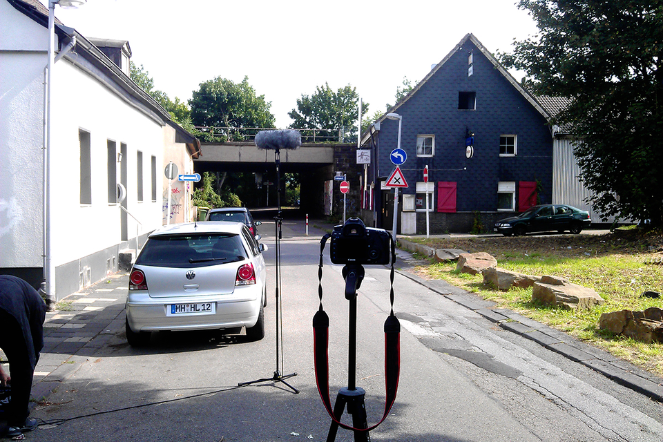 Listening through recording, using recording technology as a focusing device, and approaching the sense of space and place generated by sound and listening were the main themes of Trond Lossius’s Losing Myself in the World. Taking concepts from from the situationist ‘dérive’ (Debord (1956) 2006) as an exploratory method, we added using the microphone to listen closely to a place. The goal was to get a sense of ‘place’ and ‘non-place’ (Augé 1995), with the recordings allowing us to capture sonic elements with their spatial acoustic characteristics. During the ten days spent in Mülheim we laid a network of visits across the town, attempting to capture as many different characteristics as possible. The shared listening experience between Trond and Jan was occasionally extended when other people curious enough to inquire were offered the headphones to let them listen through the microphone, as if looking through a telescope or the viewfinder of a camera. In recording and documenting the exploratory process, a form of field recording that includes video was found, with the clearly defined goal becoming to show it in an upcoming exhibition situation in a cinema in Norway.