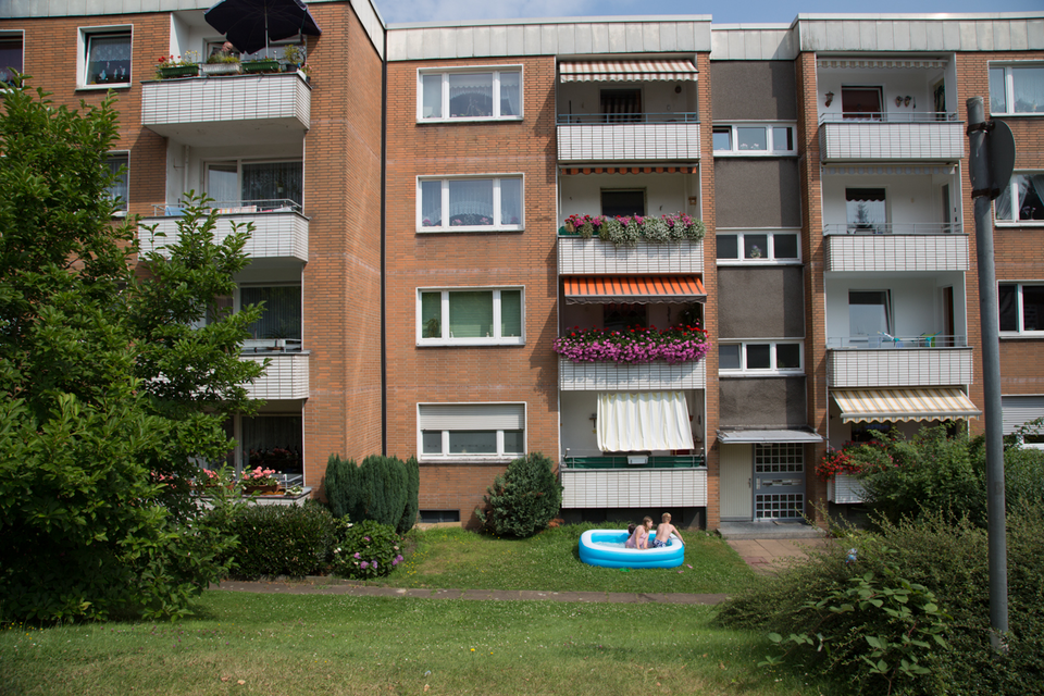 Along the back way from our flat through the Eppinghofen immigrant district, under the railroad bridge crossing the busy Tourainer Ring, and over the Helmut Schlitt pedestrian bridge to the Forum, along Schloßstraße again.