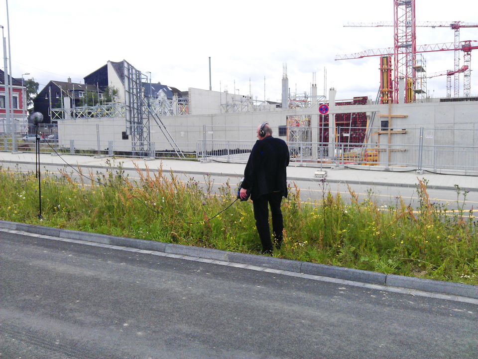 During the summer of 2013, project leader Jan Schacher travelled to Mülheim on five different occasions, with stays lasting between three to five days, to carry out the project with project partners Cathy van Eck, Kirsten Reese, and Trond Lossius. The choice of these collaborators was motivated by an interest in their individual practices; nevertheless, although all three collaborations deal with sound and public spaces, each represents its own clearly defined focus. And instead of setting up a group process where the collaborations and interactions would occur within the whole group, the choice was made to engage in pairs, thus creating a more detailed perspective on one topic at a time and enabling personal exchange and dialogue. Originally the idea was to mix the three practices with the fourth practice by the project leader, but it rapidly became evident that this was not necessary.