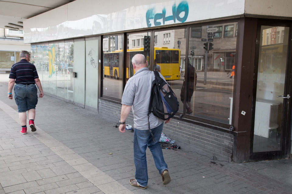 – In Trond’s case, the act of field recording in the urban context generates curiosity and people ask what this is about and there’s the opportunity to engage them in the process; that is, by handing them the headphones and letting them listen to/through the headphones. Question: How can this be systematised? Where would this make most sense in terms of social interaction? (Downtown Mülheim, or inside the Centro shopping mall in Oberhausen)?