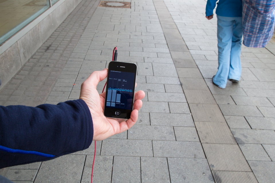 The project sonozones originated within the context of a larger initiative by the Institute for Contemporary Arts Research of Zurich University of the Arts (IFCAR). The multi-year regional arts initiative ‘Urbane Künste Ruhr’ invited IFCAR, and in particular its research initiative ‘Public City’ to set up a research lab in the German town of Mülheim an der Ruhr. In the context of this lab, four separate teams from different artistic disciplines, such as fine art, media art, or performing arts, carried out artistic initiatives. The project depicted here is located within and motivated by the perspectives of sound art and music.