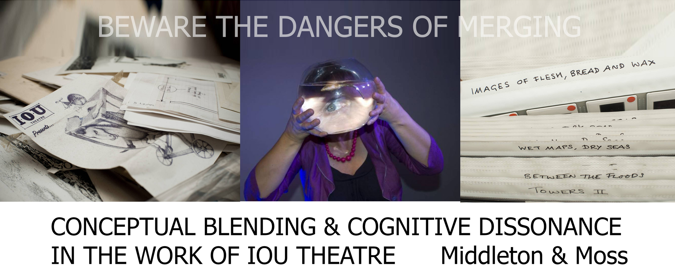 IOU’s intermedial theatre induces in its audience a perceptual experience and creative mode of spectatorship that we discuss in relation to conceptual blending. In this exposition we explore a model that we suggest illuminates and helps us to comprehend IOU’s creative process and the subsequent experience offered to audiences.