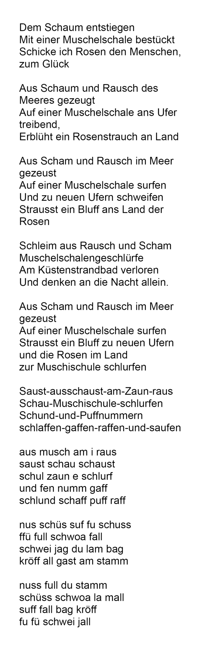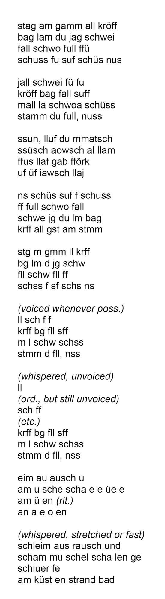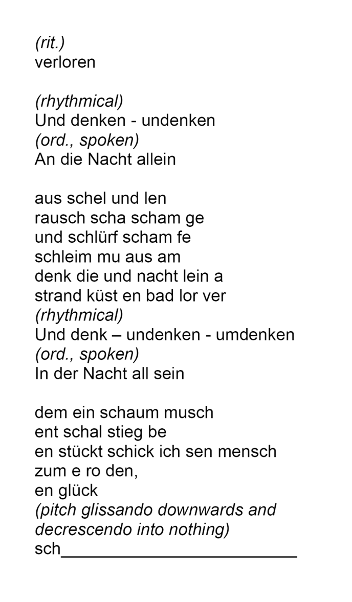 Note that a second version for six vocal performers has been elaborated by the Auditivvokal Dresden. To listen to a version and to see its theatrical realisation (during the rehearsals!) go to this page: Schaumspuren, for six vocal performers.