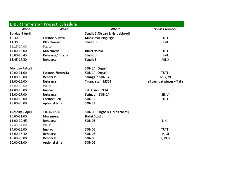 Appendix V Schedule for the “Biber Immersion Project” (Project Three)