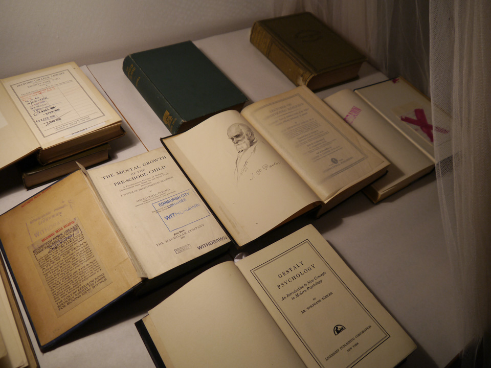 I began to buy outdated psychology books from online booksellers. The publications date from around 1900 to 1960 and are not classed as rare or antique, they are just unwanted stock. Most still carry the labels and catalogue numbers of the libraries that discarded them. Many of the title pages are stamped ‘withdrawn’, marking a point at which the knowledge inside them became an embarrassment, or at least an irrelevance, and they were consigned to storage until the development of online second-hand bookstores provided a means of disposal.
